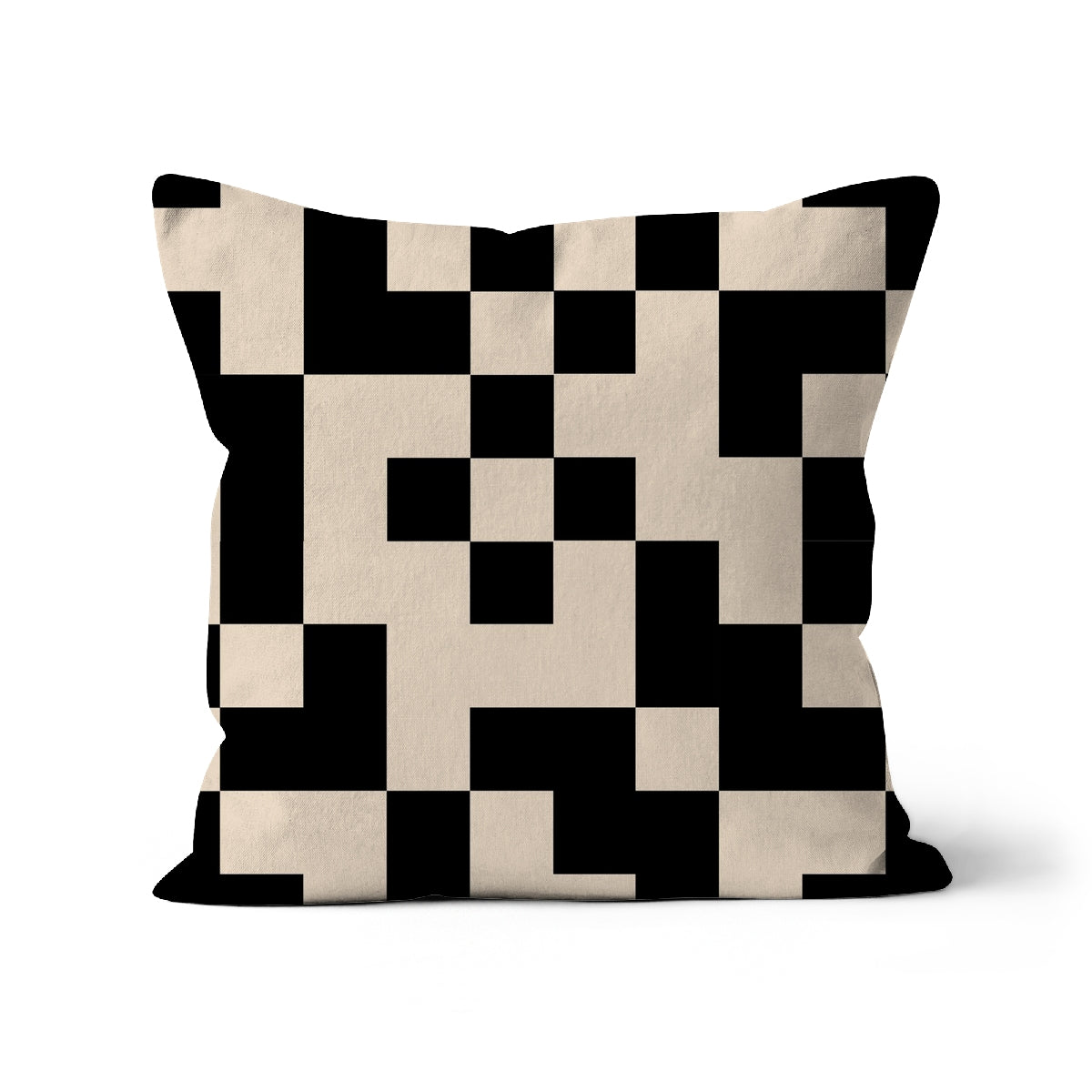 in our Brighton studio and sustainably made in the UK from 100% organic cotton, it features a striking black and cream pixel-inspired pattern printed on both sides. Finished with a concealed zip closure for a seamless look.